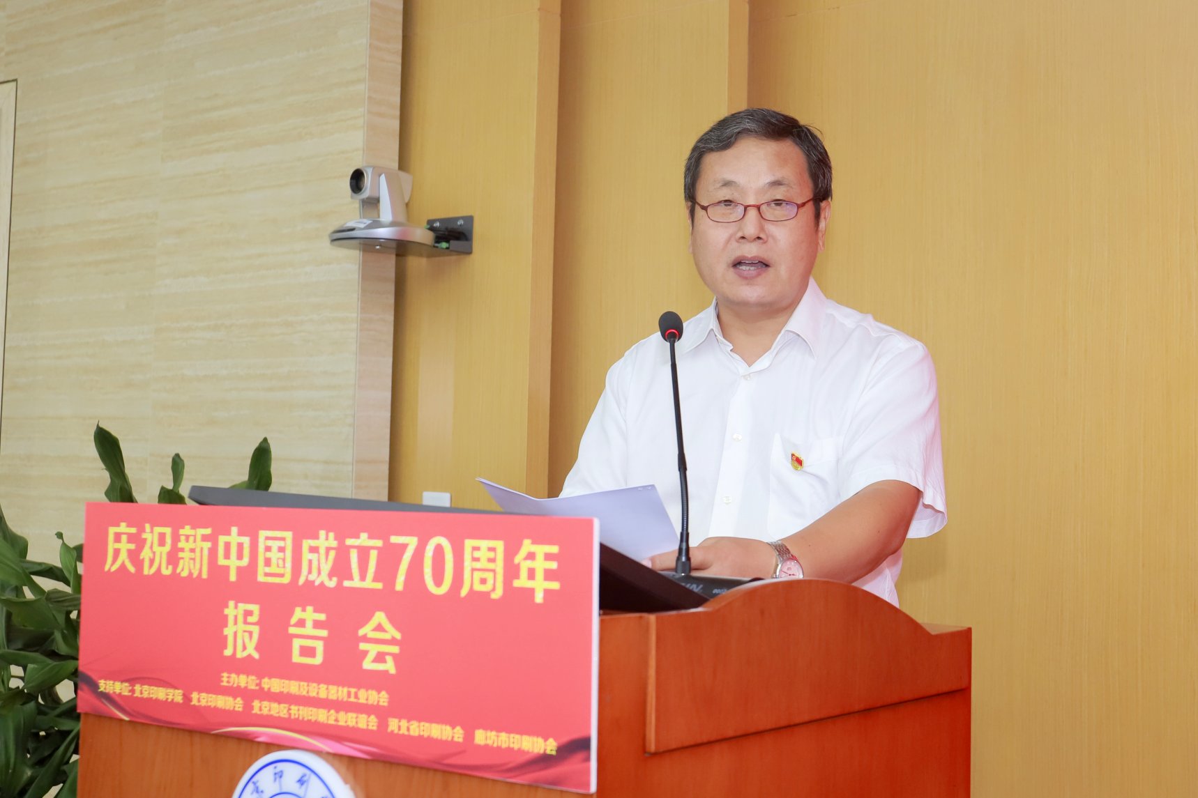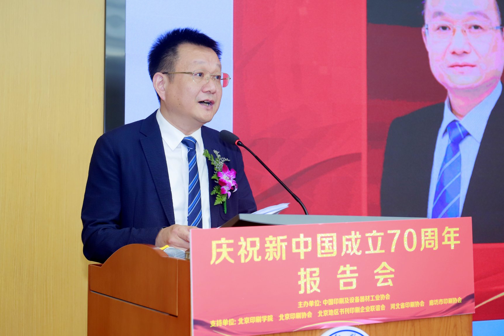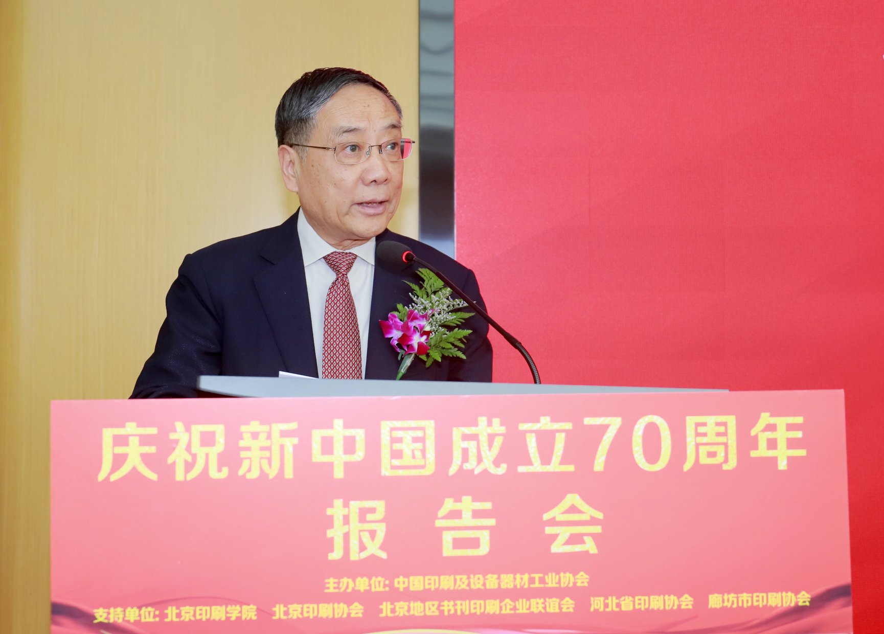王泉在致辞中讲到,在中国共产党的领导下,中国发生了伟大的历史性变迁,中国印刷业发展改革也取得了辉煌成就。70年来,党和政府一直高度重视印刷业的发展,通过体制改革、技术创新、融合发展、对外开放等重大举措,调动了全行业的主动性积极性创造性,推动产业实现了跨越式发展。企业数量由解放初的千余家增加到近9.8万家,增长了 90多倍,印制出版物品种由不足1万种增加到约50余万种,增长50多倍。经历70年的拼搏奋斗,我国已建立治理体系完整,产业门类齐全的印刷加工制造产业链体系,已发展成为世界第二印刷大国。
