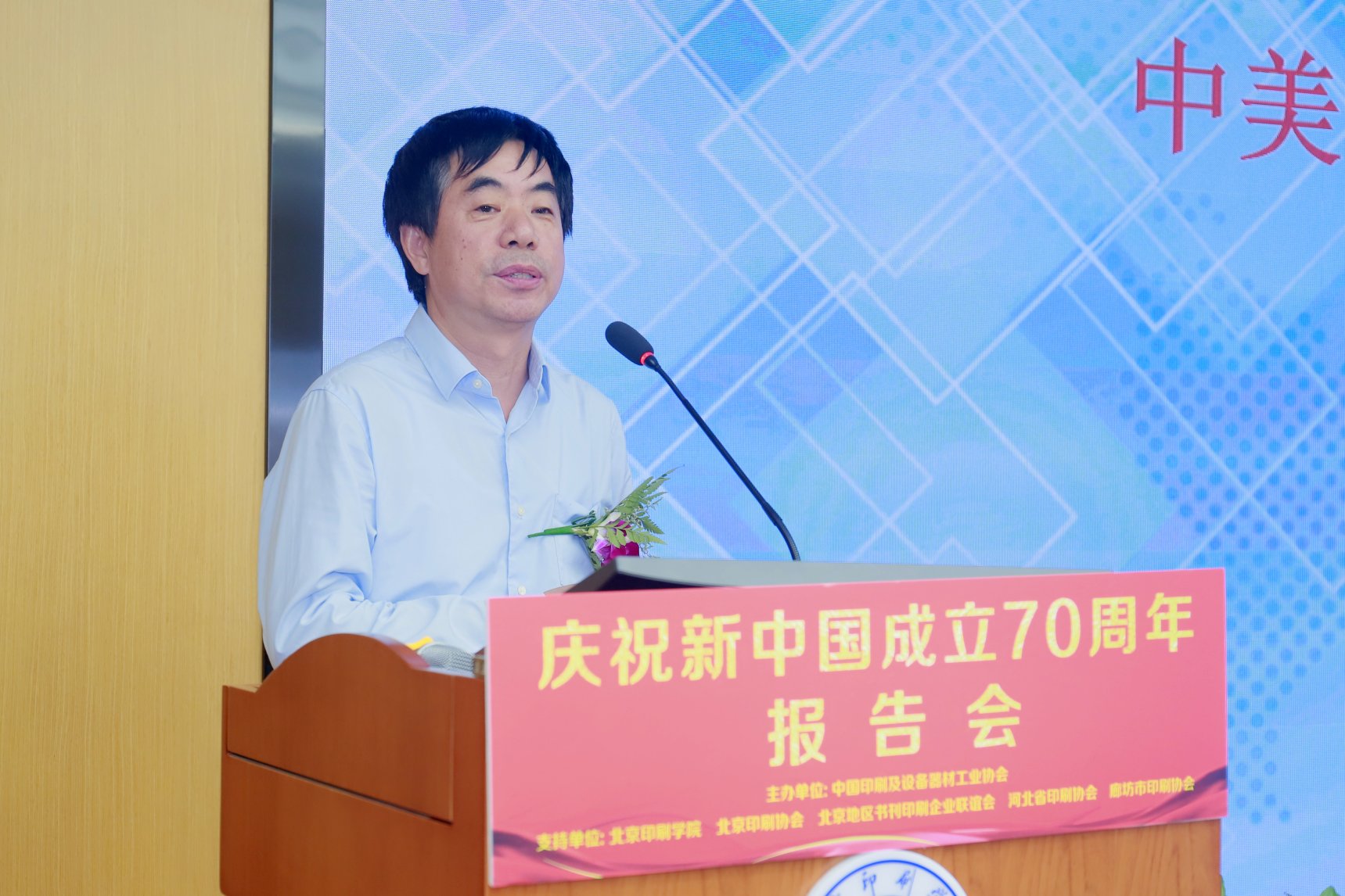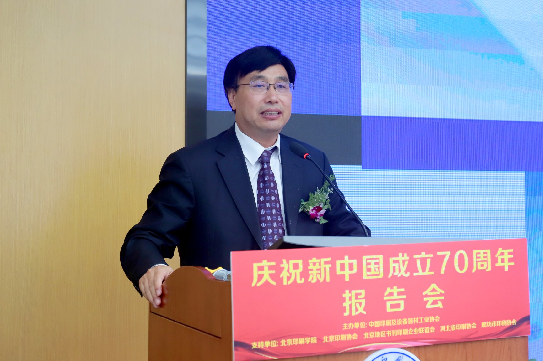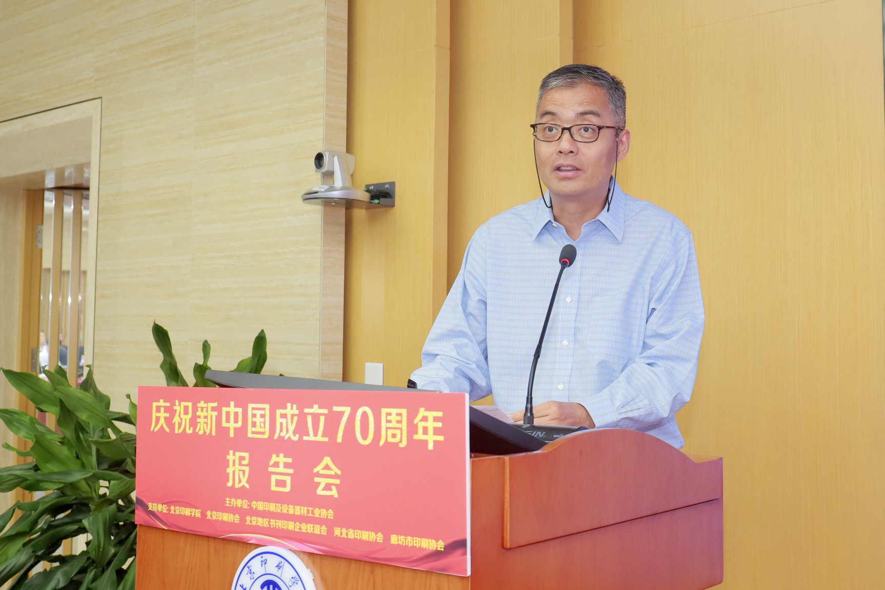 王泉在致辞中讲到,在中国共产党的领导下,中国发生了伟大的历史性变迁,中国印刷业发展改革也取得了辉煌成就。70年来,党和政府一直高度重视印刷业的发展,通过体制改革、技术创新、融合发展、对外开放等重大举措,调动了全行业的主动性积极性创造性,推动产业实现了跨越式发展。企业数量由解放初的千余家增加到近9.8万家,增长了 90多倍,印制出版物品种由不足1万种增加到约50余万种,增长50多倍。经历70年的拼搏奋斗,我国已建立治理体系完整,产业门类齐全的印刷加工制造产业链体系,已发展成为世界第二印刷大国。