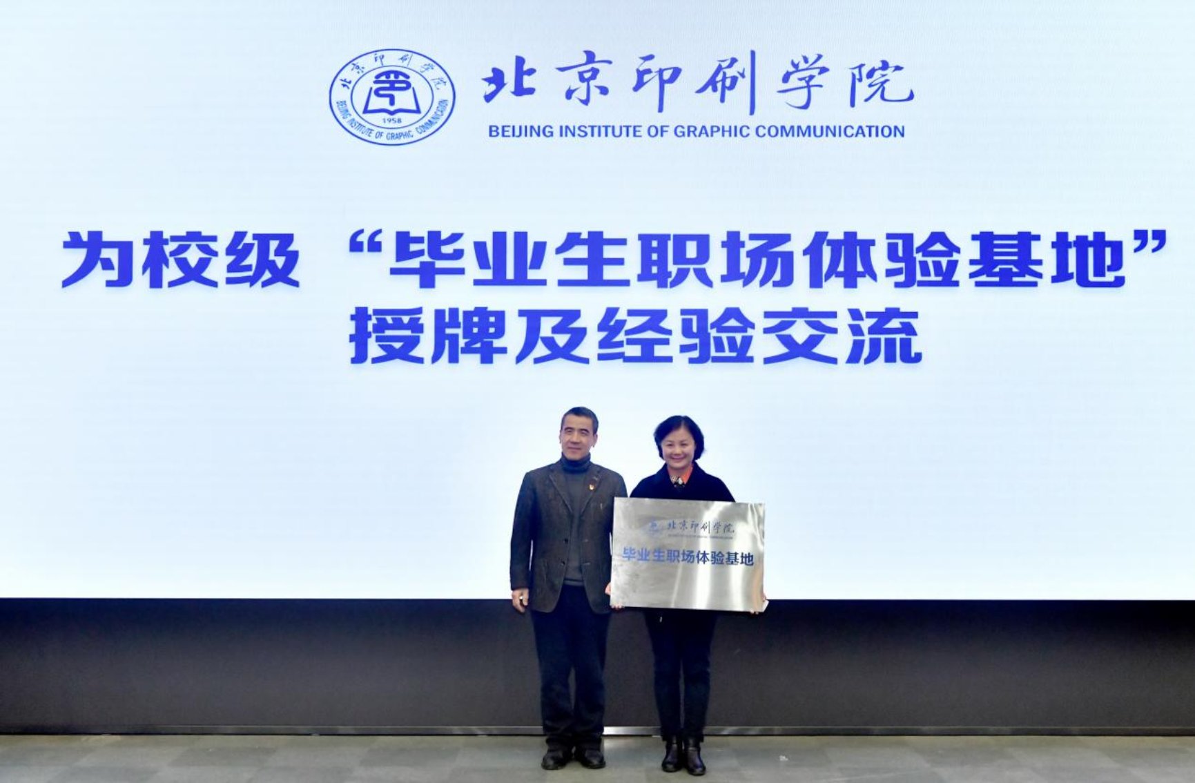田忠利校长将学校首个校级“毕业生职场体验基地”授予以人才培养为重要任务的北京绿色印刷包装产业技术研究院。